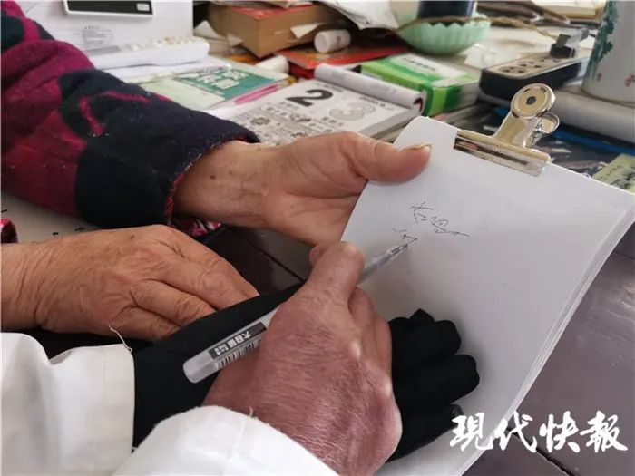張又今合起雙手寫藥方。圖片來源:現(xiàn)代快報(bào)