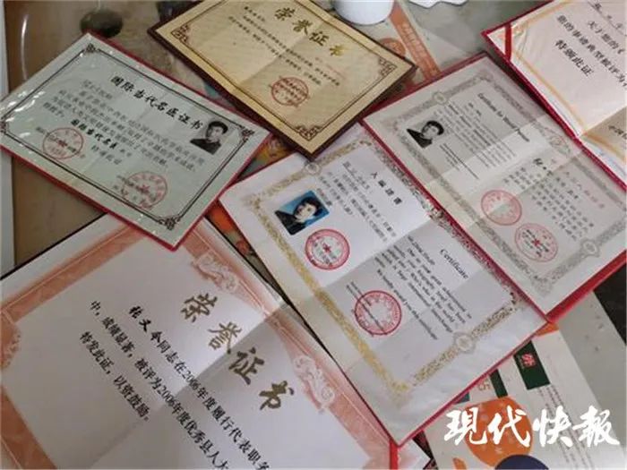 張又今獲得的榮譽(yù)證書與獎(jiǎng)項(xiàng)。圖片來源:現(xiàn)代快報(bào)