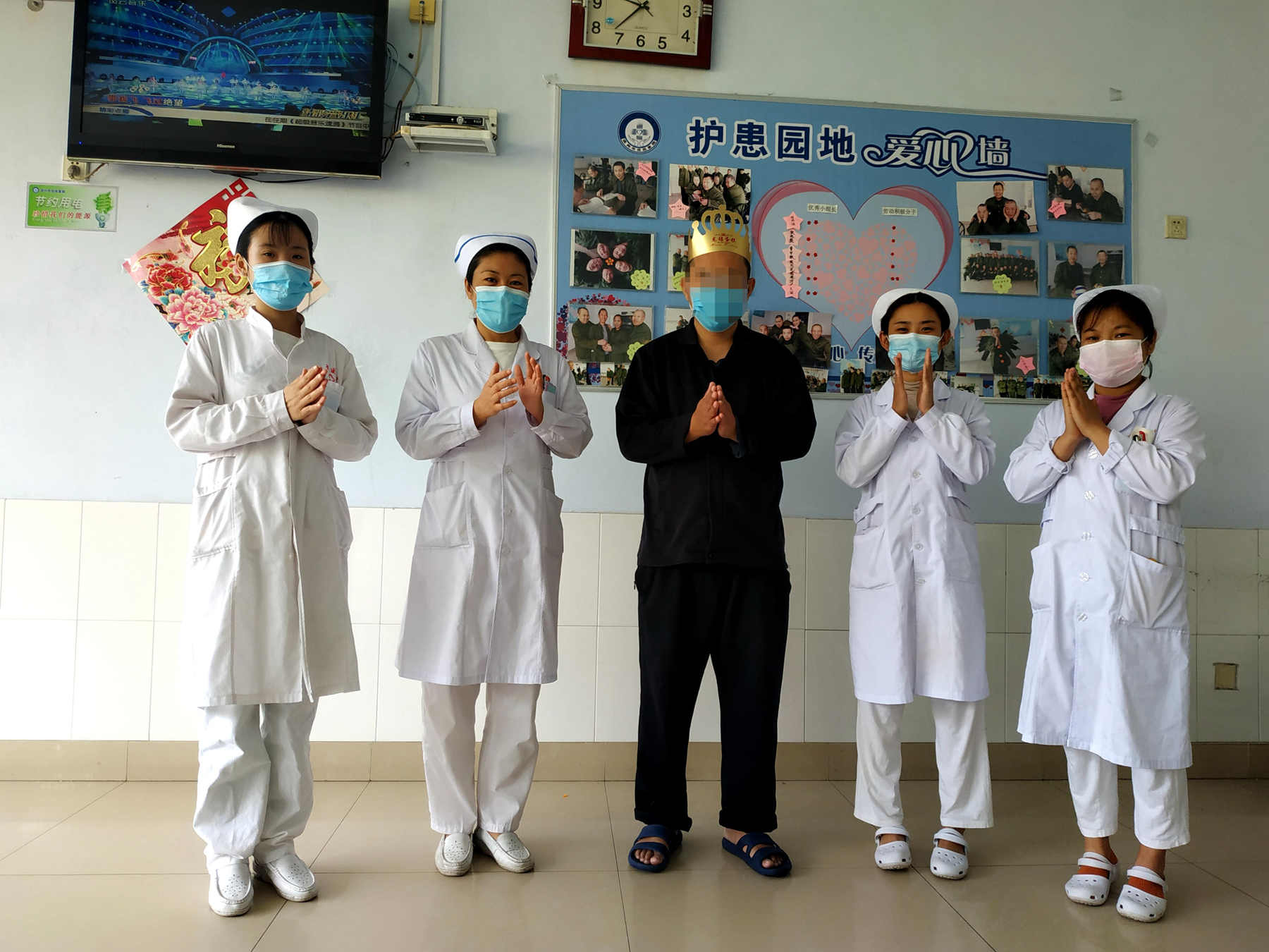 看著患者開心的笑容,我們的眼眶里也泛起了淚花,在吹滅蠟燭的時(shí)候,大家默默地許下心愿,愿患者早日康復(fù),疫情早日消散,愛在春天,溫暖相伴。(二病區(qū) 宋娜)