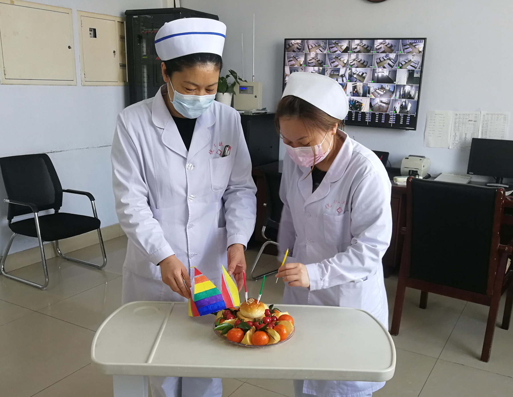 疫情期間,醫(yī)院實(shí)施封閉管理,買不到蛋糕,沒有關(guān)系!這也難不倒我們,瞧我們自己做的蛋糕和生日帽。