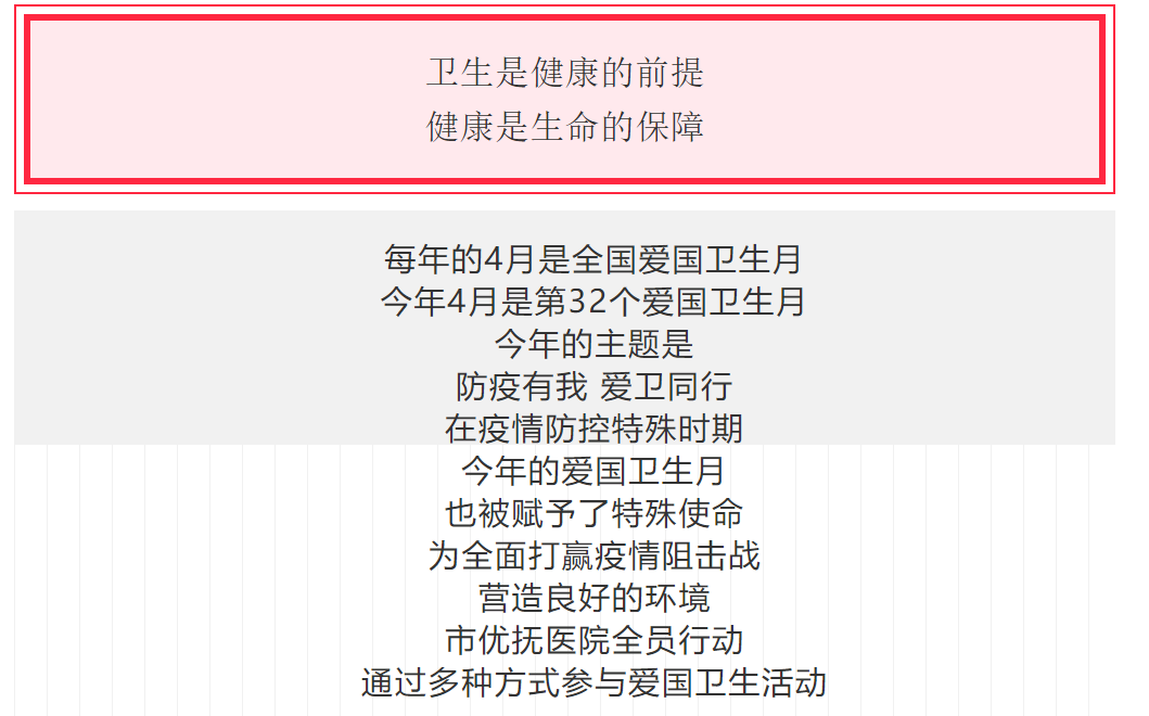 印發(fā)《關(guān)于開(kāi)展“愛(ài)國(guó)衛(wèi)生月”公共環(huán)境衛(wèi)生集中整治志愿服務(wù)活動(dòng)的通知》,在微信群、網(wǎng)站、微信公眾號(hào)發(fā)布文明用餐、文明行為宣傳廣告,倡議全院職工養(yǎng)成良好衛(wèi)生習(xí)慣和衛(wèi)生健康理念。