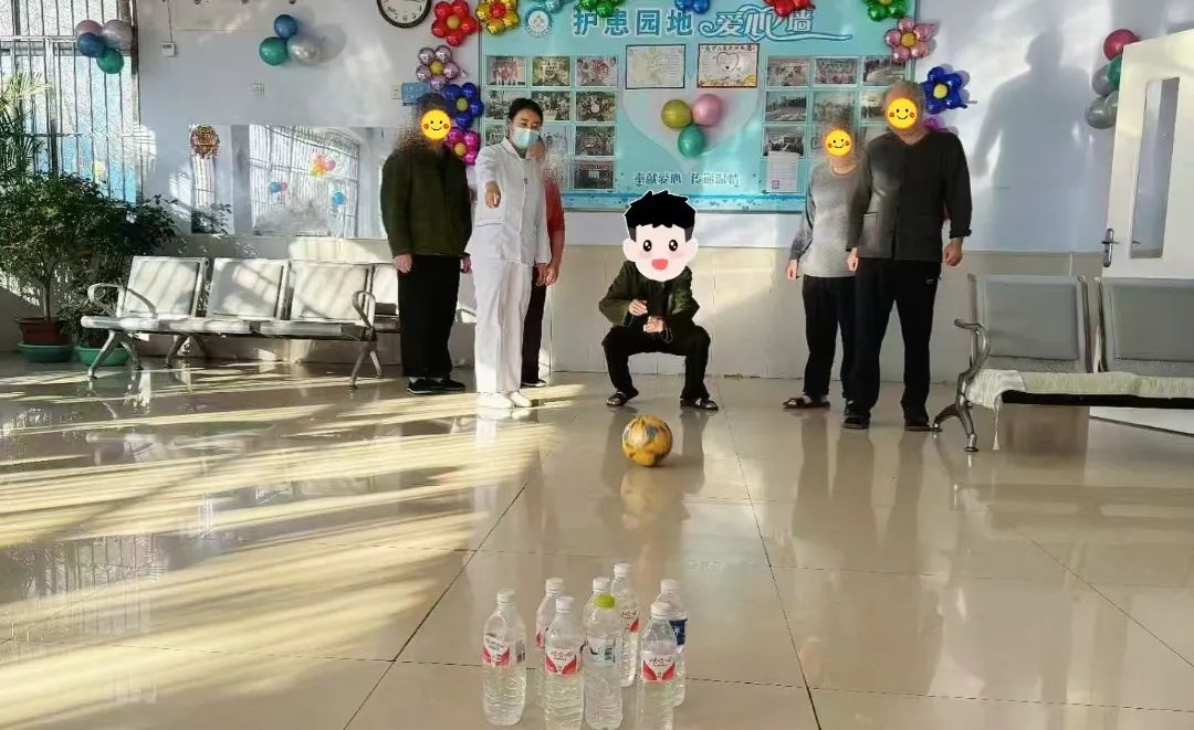 一病區(qū)的醫(yī)護人員們用空瓶代替保齡球瓶,和患者一起參與到簡易保齡球游戲中。大家輪流用軟質(zhì)小球進行投擲,每當有人成功擊倒所有瓶子,病房內(nèi)都會響起震耳欲聾的歡呼聲和熱烈的掌聲,雖然場地有限,但大家卻玩得不亦樂乎。這場保齡球挑戰(zhàn)不僅讓患者們體驗到了運動的樂趣,更讓他們在活動中釋放了壓力,找回了久違的快樂。