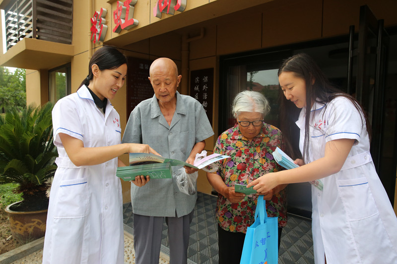 7月5日上午,我院組織醫(yī)護(hù)人員走進(jìn)彩虹胡社區(qū)德坤華府小區(qū)開展老年人健康教育志愿服務(wù)活動(dòng),為社區(qū)老年人送去了一份健康大禮包。