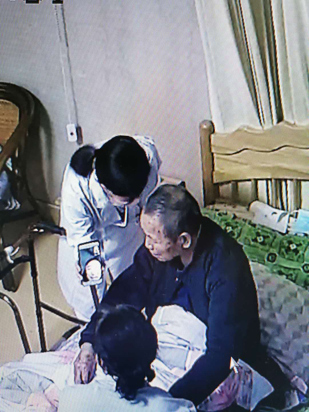 前幾天216的李爺爺因?yàn)橄雰号?,躺在床上不起?lái)吃飯,護(hù)理員徐大姐立馬聯(lián)系老人孫子,并通過(guò)孫子聯(lián)系老人的三個(gè)女兒,利用微信開(kāi)通視頻,讓老人與子女見(jiàn)上了過(guò)年后的第一面,老人和三個(gè)女兒,一邊說(shuō)一邊哭,我們的徐大姐也動(dòng)情的哭了起來(lái)。一個(gè)多小時(shí)的視頻通話,讓老人的情緒漸漸平復(fù)。當(dāng)天晚上李爺爺就主動(dòng)要求吃飯,吃了滿滿一大碗面條。我們開(kāi)心的笑了。后來(lái)老人女兒給徐大姐發(fā)微信說(shuō):老人由你們照顧我們很欣慰、很放心。并送來(lái)水果表示感謝。