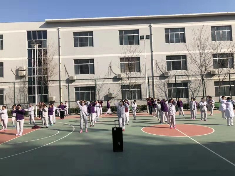 舒活舒活筋骨,抖擻抖擻精神。女病區(qū)帶著患者到籃球場跳起了廣場舞《小蘋果》,鳥兒給她們伴舞,迎春花兒為她們鼓掌。一病區(qū)組織患者在工娛療室完成了小合唱《歌唱祖國》,唱出了內(nèi)心的自豪與喜悅,表達了他們對祖國的熱愛與贊美。