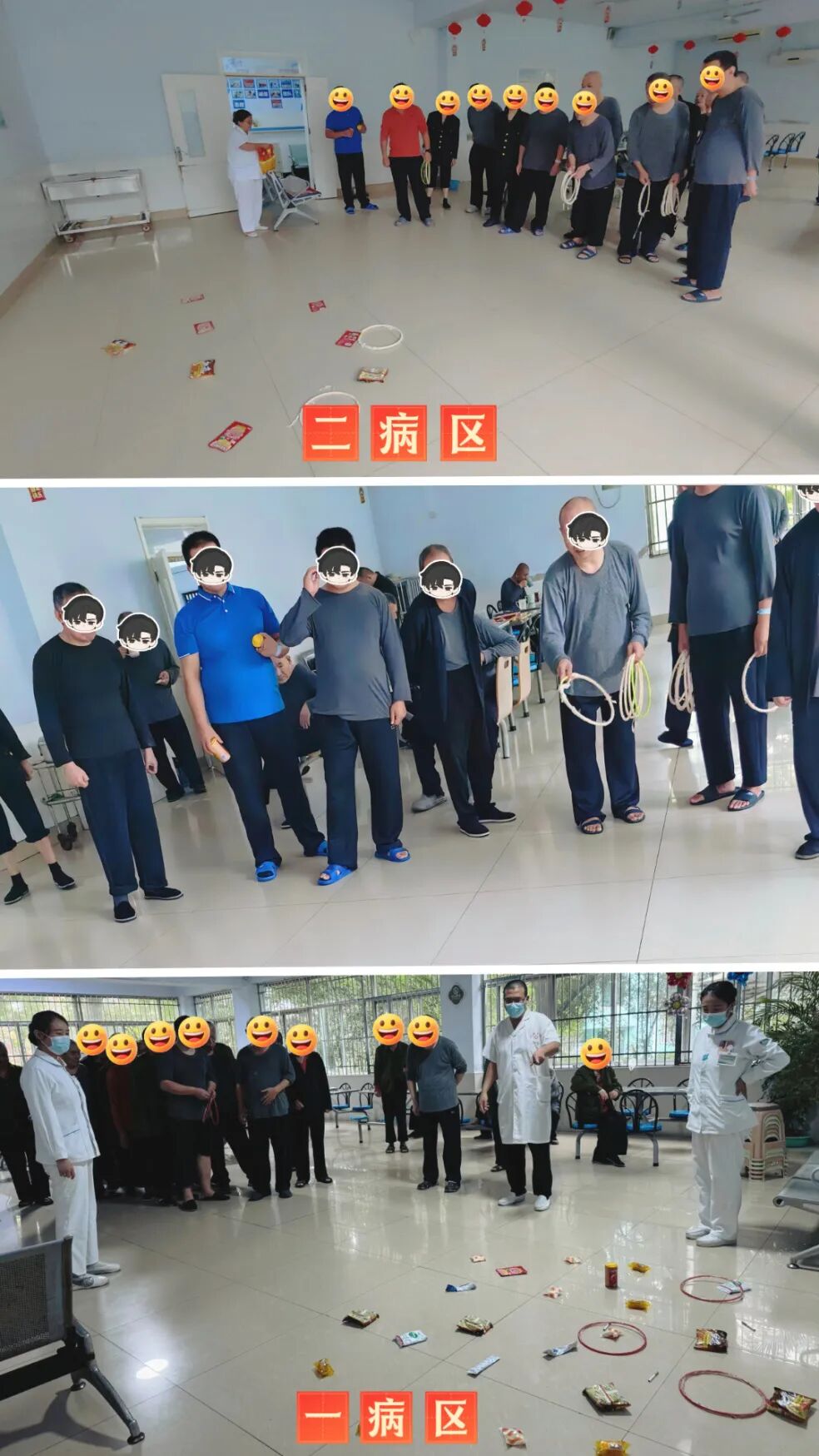 用籃球充當(dāng)“保齡球”,滾動(dòng)、撞擊、歡呼…… 每一次成功擊倒目標(biāo)瓶,都引來陣陣喝彩。這項(xiàng)活動(dòng)不僅考驗(yàn)手眼協(xié)調(diào)能力,更讓大家在運(yùn)動(dòng)中釋放壓力、重拾活力,讓病房里的中秋多了份動(dòng)感與朝氣。