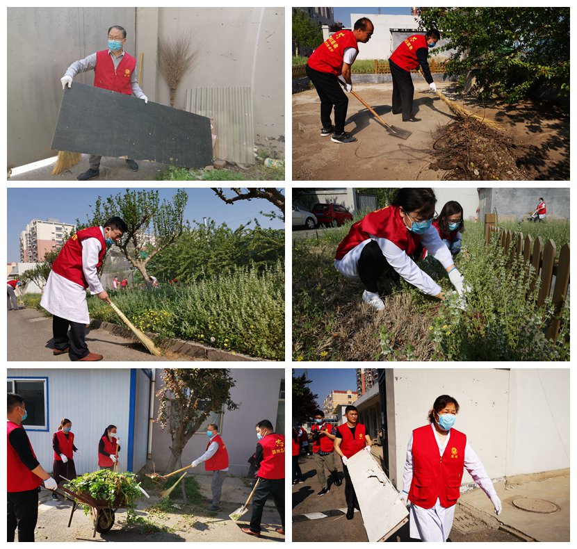 廣大干部職工拿著掃帚、笤帚、鐵鍬等清潔工具,清掃院區(qū)路面、撿拾綠化帶內(nèi)垃圾、清除廢舊物品及雜草、清理衛(wèi)生死角,大家充分發(fā)揚(yáng)不怕苦、不怕累的勞動(dòng)精神,干勁十足,齊心協(xié)力,院內(nèi)呈現(xiàn)出一派熱火朝天的勞動(dòng)場(chǎng)面。