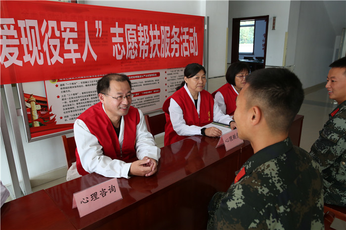 為關(guān)愛現(xiàn)役軍人的身心健康,提高基層武警戰(zhàn)士的心理服務(wù)能力,結(jié)合與武警濱州支隊(duì)醫(yī)療幫扶協(xié)議和我院文明單位創(chuàng)建活動要求,10月21日上午到武警濱州市支隊(duì)開展了“呵護(hù)心靈,關(guān)愛現(xiàn)役軍人”志愿幫扶服務(wù)活動。