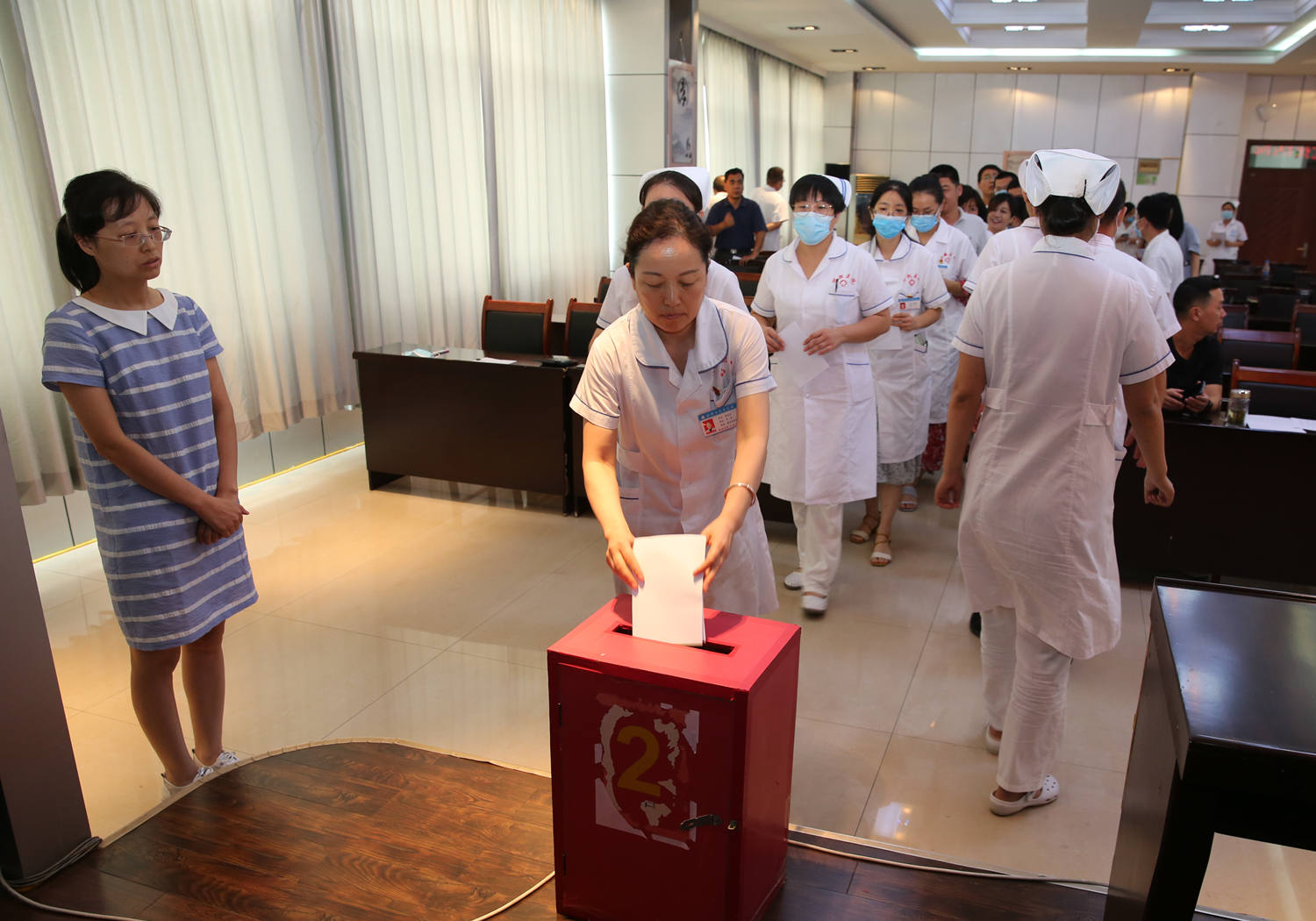 會(huì)議以舉手表決的方式通過了濱州市優(yōu)撫醫(yī)院工會(huì)委員會(huì)第七屆委員選舉辦法、新一屆工會(huì)委員會(huì)、經(jīng)費(fèi)審查委員會(huì)候選人名單、監(jiān)票人和計(jì)票人名單。以無(wú)記名投票的方式差額選舉產(chǎn)生了濱州市優(yōu)撫醫(yī)院工會(huì)第七屆委員會(huì)委員、經(jīng)費(fèi)審查委員會(huì)委員,并在其后的首次全體委員會(huì)議中明確了分工安排。