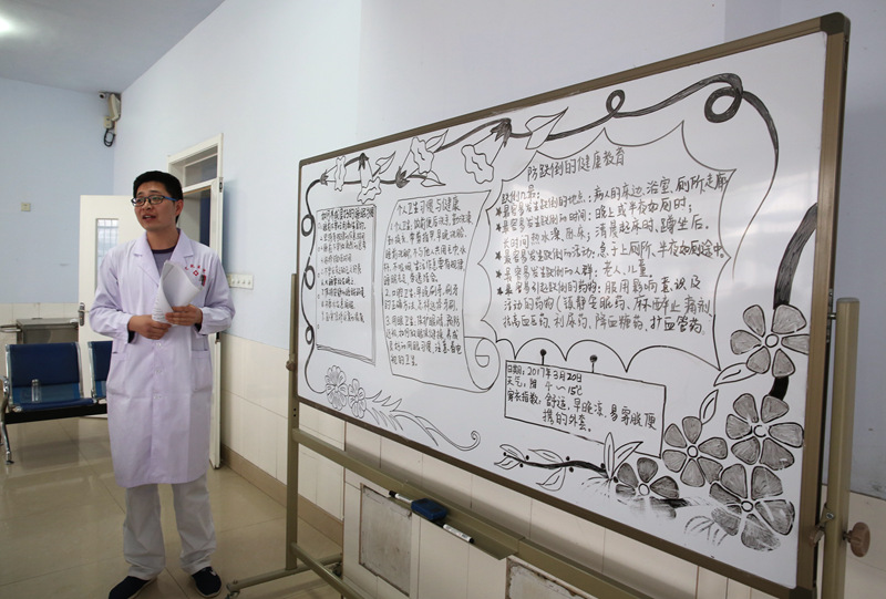 本次宣講的內(nèi)容包括兩方面,一是如何養(yǎng)成良好的作息、衛(wèi)生習(xí)慣,二是怎樣預(yù)防摔倒。看似平常的知識,經(jīng)過護(hù)理人員的精心加工,變得趣味十足,幽默風(fēng)趣的語言、夸張的模擬動作、實際例子的引入……整堂健康宣教課笑聲不斷,不像是講堂,而更像是和患者的一場交流會,護(hù)理人員每講到一個知識點,總有患者按捺不住興奮,走上講臺講講自己類似的經(jīng)歷和感受。為加深患者對健康宣教知識的印象,增強(qiáng)宣教效果,護(hù)理人員還利用業(yè)余時間,精心繪制了圖文并茂的黑板報,讓宣教知識一目了然。